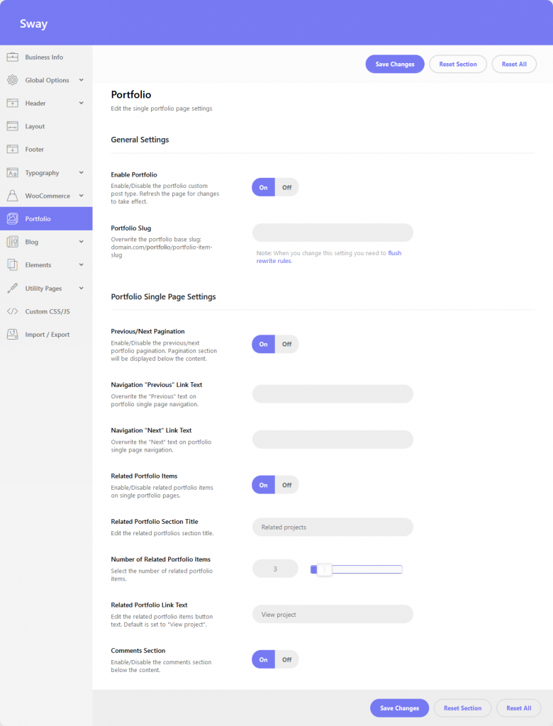 These settings allow you to tweak the Single Portfolio Posts for your site.